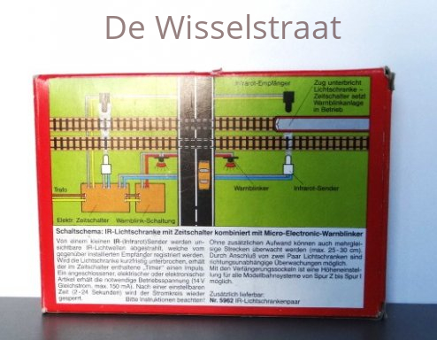 Tijd/licht schakelaar, zodra een locomotief of wagon de infrarood paaltjes passeert