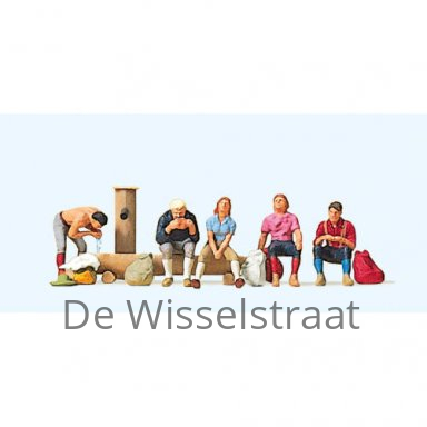Webshop » Toebehoren schaal HO algemeen » Figuren schaal HO » Figuren-3 » Preiser 10443 Wandelaars bij waterbron, 5 figuren