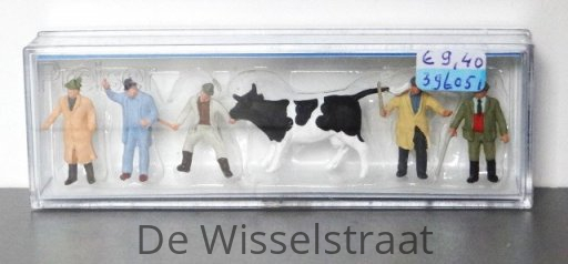 Webshop » Toebehoren schaal HO algemeen » Figuren schaal HO » Figuren-3 » Preiser 14039 Veehandelaren, 5 figuren en een koe